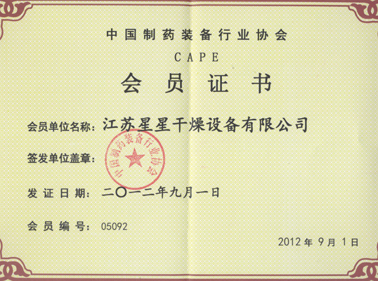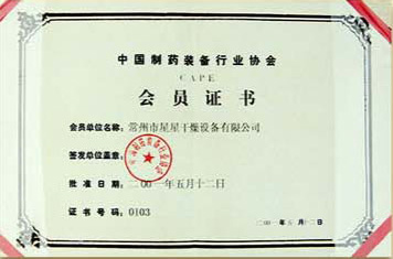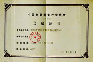中国制药装备行业协会会员证书