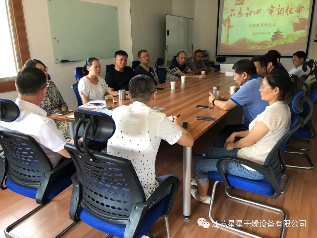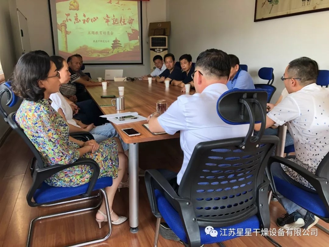 2019年9月28日,在中华人民共和国建国70周年之际,星星干燥党支部全体成员在江苏星星干燥设备有限公司二楼多媒体室举行主题为“不忘初心 牢记使命”的教育动员会。