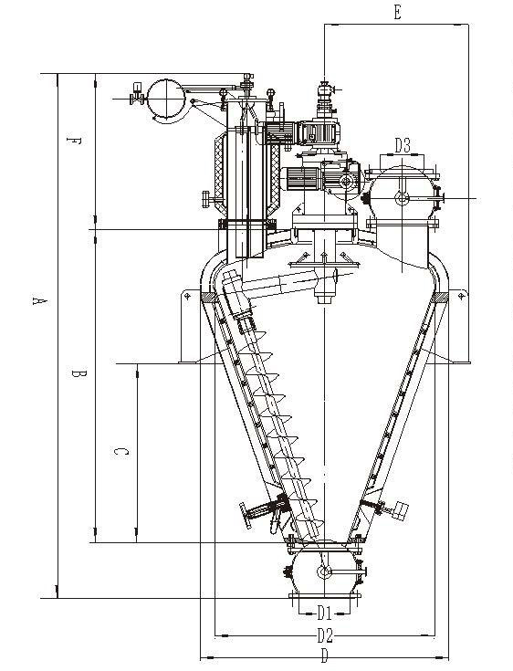 全悬臂式锥形搅拌螺旋轴 全封闭式系统